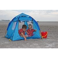 Protect your children from UV rays while at the beach or in the backyard with the ABO Gear Insta-Tent tot shelter. The Insta-Tent is made of UV-coated fabric, with a strong, sturdy, lightweight pop-up pole system that sets up in seconds and breaks down in a flash. As a result, the tent makes a perfect play shelter for bright, sunny days, or a great shelter for your toddler's afternoon naps. The Insta-Tent is also well ventilated, with mesh-paneled doors and windows providing a nice cross breeze. And thanks to the sand pockets and pegs, the Insta-Tent will remain stable even in high winds. Other features include a zipper door for complete privacy, a rain fly for inclement weather, and a blue carrying bag. The Insta-Tent measures 4 by 2.83 by 4 feet (W x H x D) and weighs 5 pounds.