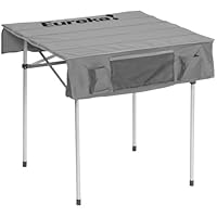 A folding table is one of those items you say thank goodness we brought it camping with us. It was easy bacause it folds up into its own convenient carry case 28"x5.5"x5". Its constructed with powder coated steel and it will hold 50lbs. Our folding table works great for those backyard BBQ's too.